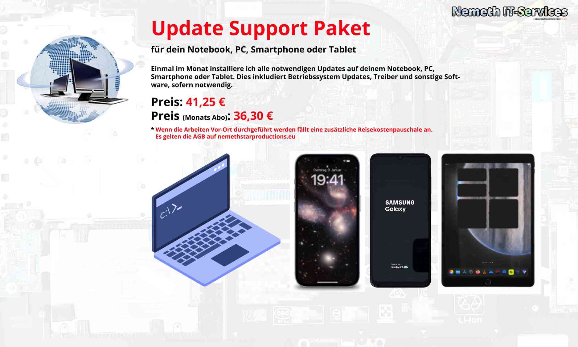 IT support is available for private individuals and businesses (up to 50 employees in the EU, up to 150 outside).