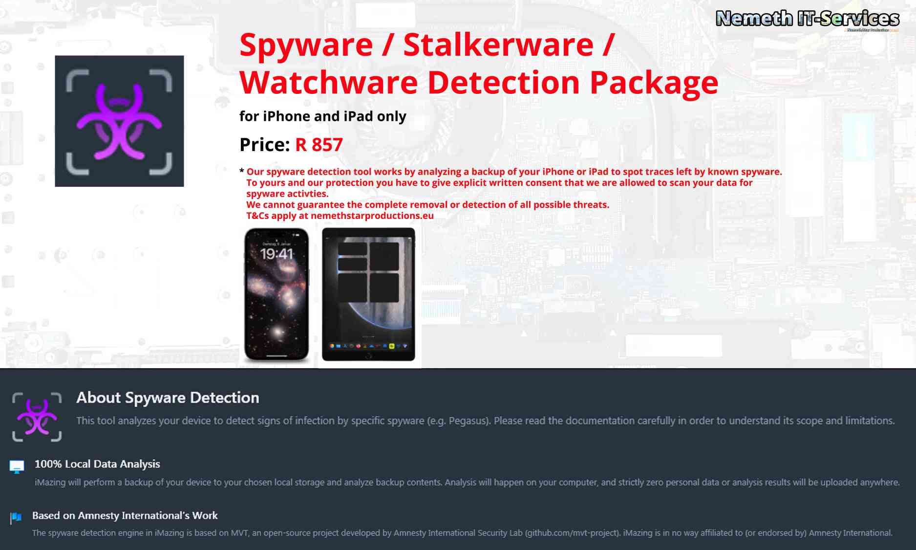 | Spyware Checkup for iPhone, Windows & Android | From € 82,50 / From R 857 | Book | Book | + travel costs |