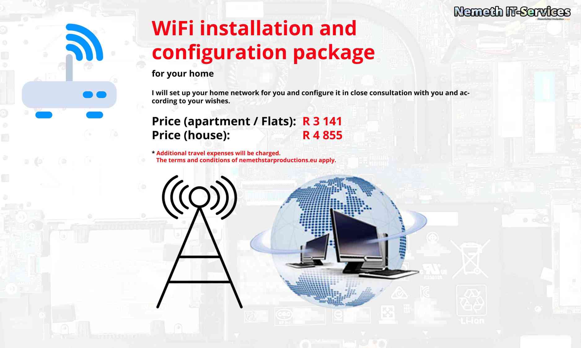 | WiFi Installation and Configuration for flats/apartments | € 280 / R 3,141 | Book | Book | + travel costs |